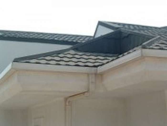 Dış köşe dönüş parçaları yandaki gibi kesilip hazırlanmalıdır. Kesilen iki oluk parçasını oluk kepçesine takınız. Tüm birleşim yerlerine 20 mm. boydan boya silikonlayınız ve parçaları birbirine geçecek şekilde hafifçe içeri doğru itiniz. Yandaki gibi perçinleyiniz. Tüm birleşim yerlerini silikonlayınız.